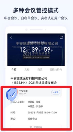 1、借助实时连线功能,平台助力用户与上市公司进行线上调研会议,不仅节省时间、效率高,而且不受地域约束。