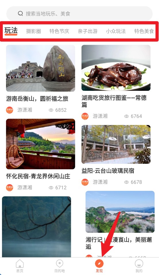 3、轻点“发现”按钮,即可探索摄影、节庆、美食等各类特色玩法,从中汲取旅行灵感,收获实用攻略。