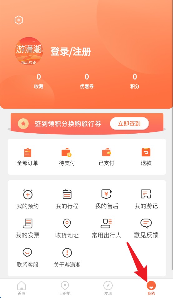 4、轻点“我的”按钮,即可进入个人中心,在此可查看订单、行程、积分、优惠券以及售后等各类个人服务内容。