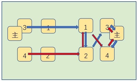 如上图所示:1、3号位和主角出手,进攻敌方单位顺序>1>2>3>主角>4;
