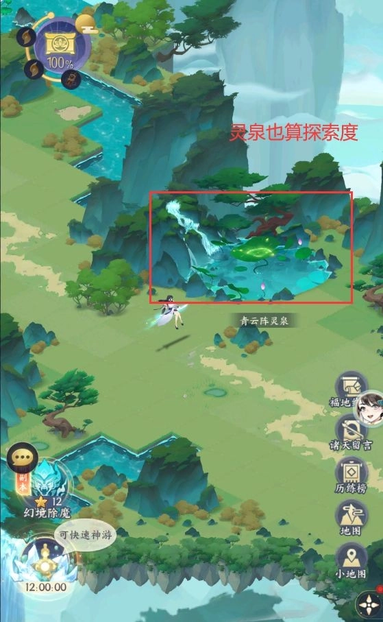 回到上一张地图后,再点击小地图查看是否有漏捡的采集物或者灵泉