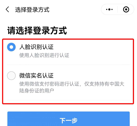 2. 挑选一种登录方式,随后点击【下一步】完成登录操作。
