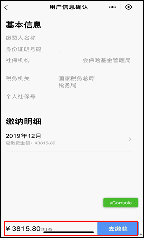 5、最终确认用户信息以及缴费明细的金额,在确认无误之后,点击【去缴款】即可。