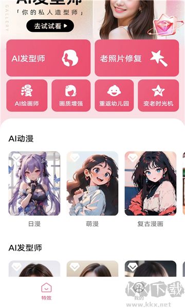它为用户提供了丰富多样的风格选择,用户仅需挑选心仪的风格,此外,还有各式各样的AI发型,等待着用户前来体验。