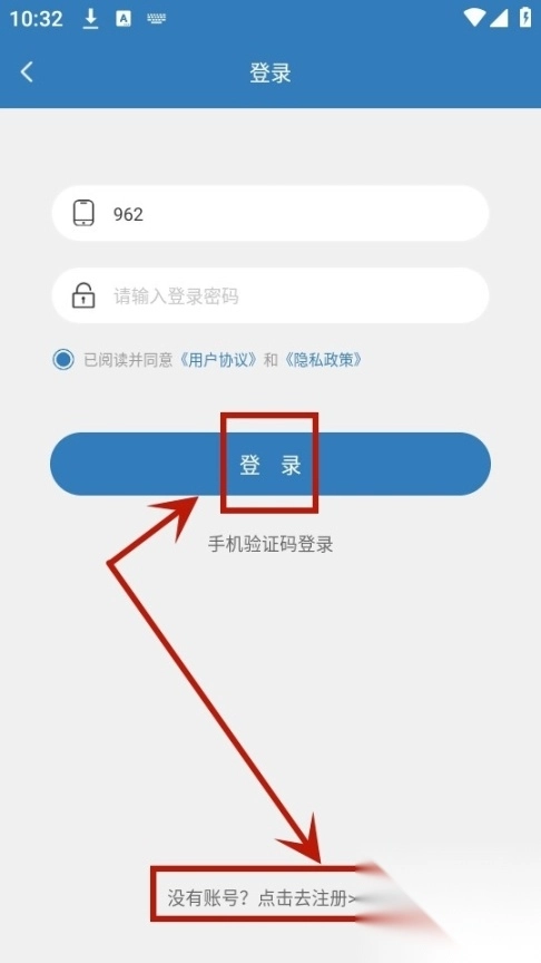 3. 只需输入手机号与密码,勾选用户协议后点击登录。若尚未拥有账号,点击【点击去注册】即可。