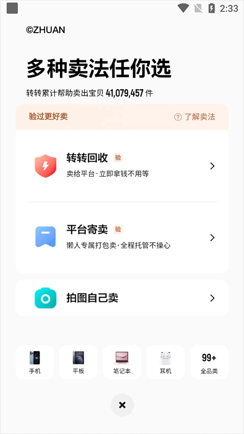 4、转转app还提供了多种卖法供用户进行交易