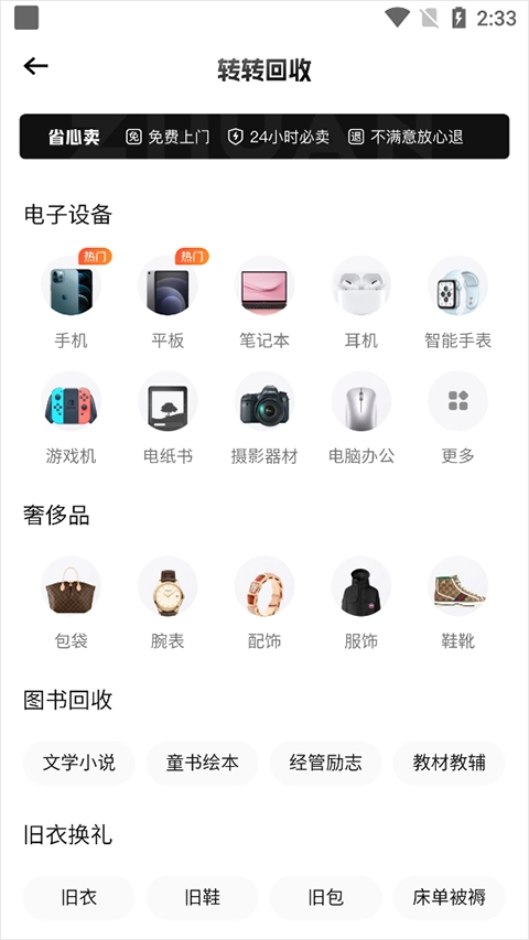 2、省心回收服务:免费上门取件,秒到账不满意还能退。