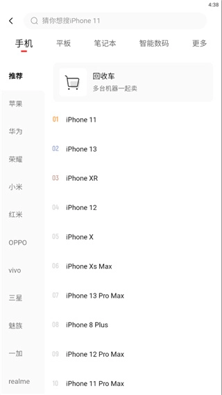 6、接下来,用户仅需按顺序挑选手机品牌、型号,再依照操作流程完成售卖就行。