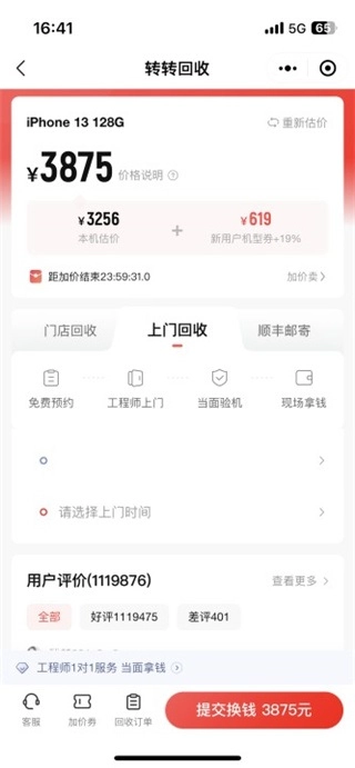 5、用户获取精准估价后,若选择上门回收,提交换钱操作便可完成。