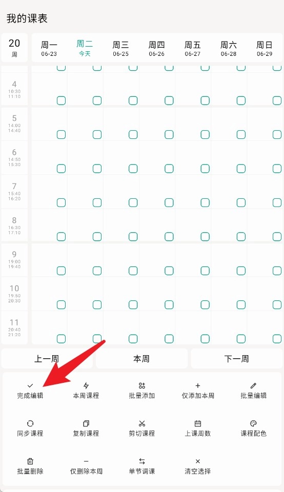 4. 在编辑模式中,能够批量添加课程、设定周数以及删除课程等,助力实现对整周课程内容的高效灵活管理。