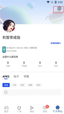1、打开apkhub,在个人中心模块点击右上角设置。