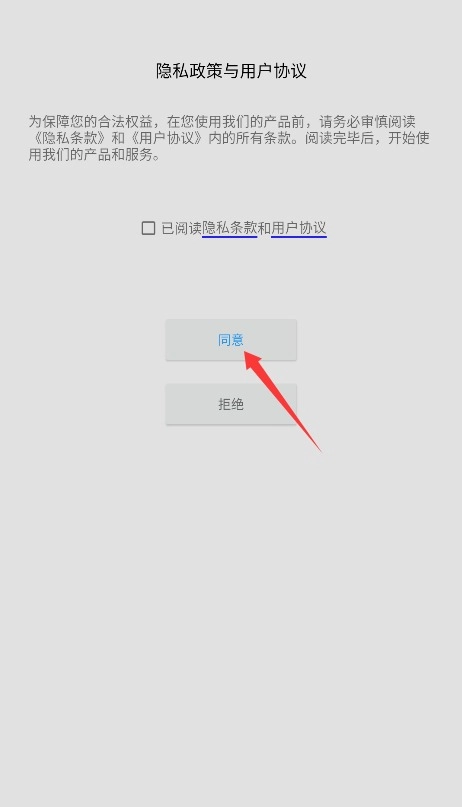 1、初次使用需完整阅读平台服务条款与隐私政策,确认后点击同意按钮进入应用。