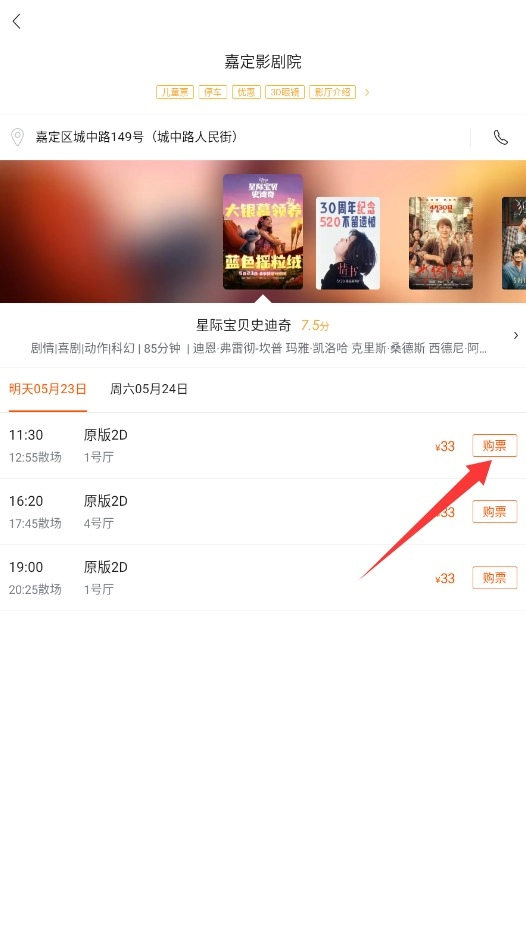2、进入购票页面先选好观影日期,然后挑个合适的影厅,不同厅的票价可能不一样。