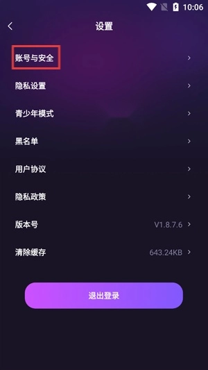 在设置界面点击账号与安全功能。