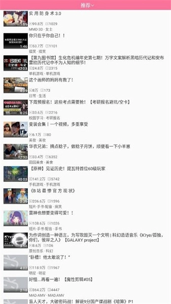 1、哔哩哔哩手表版app设有各类视频分类频道,用户可依据自身兴趣喜好,从中发现好看的视频。