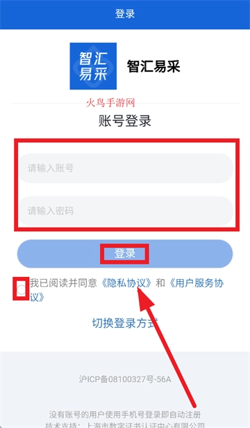 请输入账号、密码,勾选“我已阅读并同意《隐私协议》和《用户服务协议》”,然后点击“登录”按钮,便可完成登录操作。
