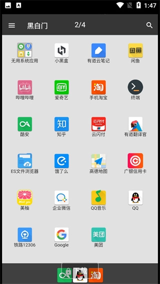 4、在黑白门内启动应用后,应用会被添加至底部白门列表。上滑操作能够关闭应用,长按图标则可将应用上锁。