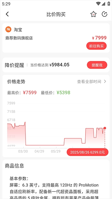 2. 随后在详情页面向下滑动,寻找到价格走势图,这样便可查询历史价格。