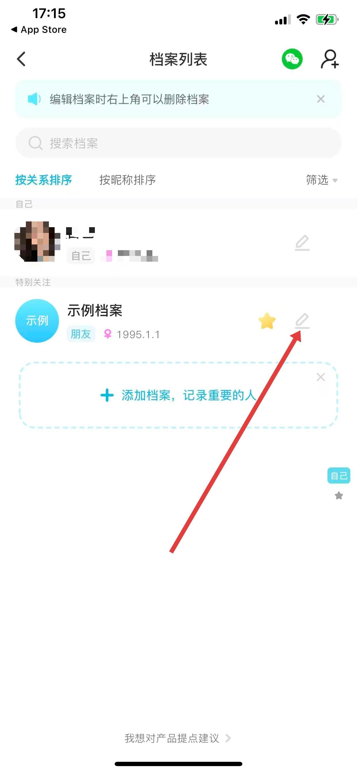 2. 打开档案列表,从中找出需要删除的档案,点击该档案右侧的编辑图标,从而进入编辑档案的界面。