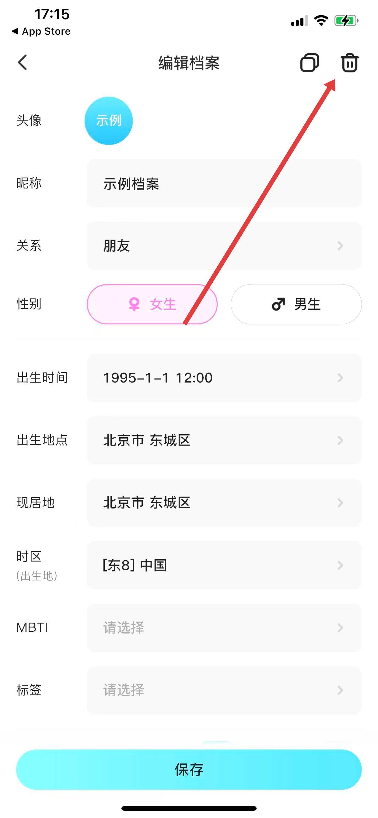 3、于编辑档案的界面,点击右上角呈垃圾桶形状的删除图标,便能删除此档案。