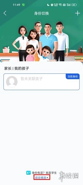 3、当进入身份切换页面时,你会留意到一个呈蓝色字体的“前往修改”按钮,点击该按钮。