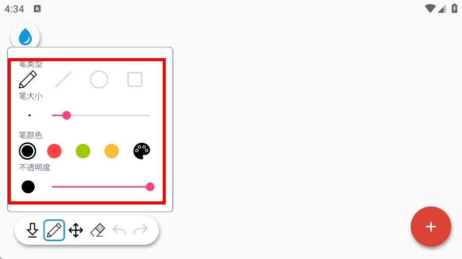 1. 在绘画设置界面中,能够对笔的类型、大小、颜色以及不透明度等参数进行设置。