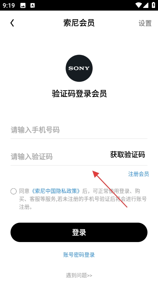 2. 前往索尼会员页面,若选择验证码登录,需输入手机号码以获取验证码,勾选同意隐私政策后点击登录;若倾向账号密码登录方式,也可通过此途径完成会员登录流程。