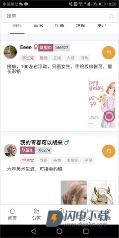 1、打开手机上的画师联盟,进入【需求】页面里的【插画约稿】。