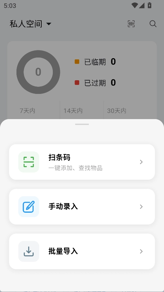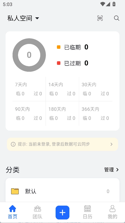 1. 开启后,在首页可看到不同时间段内即将到期的数量,点击“+”添加信息。