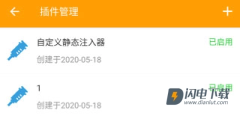 6、完成修改后,点击右上角的√进行保存。在设置里的插件管理处,能够看到刚刚创建的静态注入插件,点击启用就可以了。