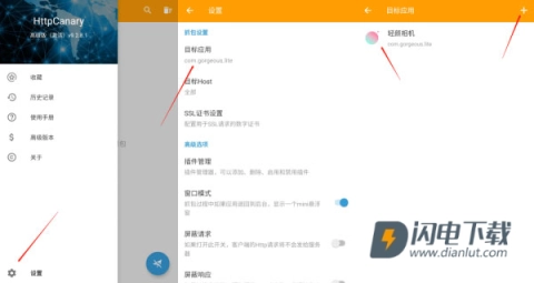 2. 打开设置,选中目标应用,添加轻颜相机(如此操作能够防止抓取其他不必要App的数据,更易于查找包数据)。