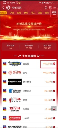 4、于上方栏目里选择投票选项后,依旧能够针对该行业的品牌展开投票。