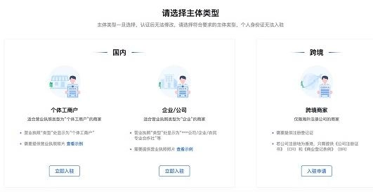- 当前仅支持企业或个体入驻,暂不支持以个人身份入驻。