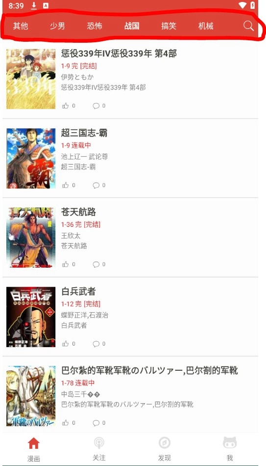 2、大家可以在上方根据分类来挑选自己想看的漫画;