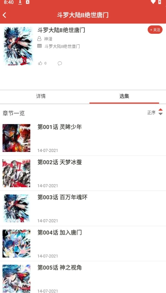4、接着进入漫画详情界面,切换到选集页面,然后点击你想看的章节;