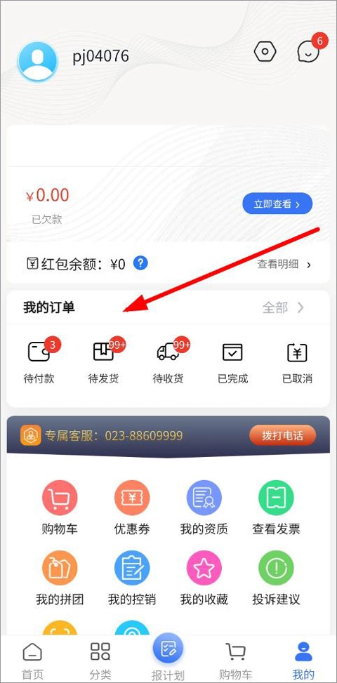3、完成付款后,进入“我的”页面,在此页面中能看到“我的订单”,点击“订单详情”,就能查询订单相关信息。