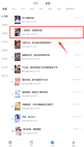 2. 进入相应页面后,找到人气榜,挑选自己喜爱的小说并点击。