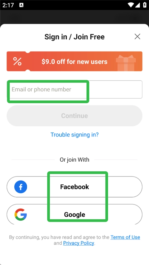 4. 用户能够通过电子邮箱或者电话号码来完成注册登录,此外还能选择使用facebook或谷歌账号进行登录。