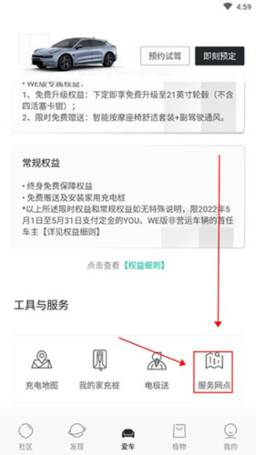2. 进入页面后向下滑动,点击【服务网点】。