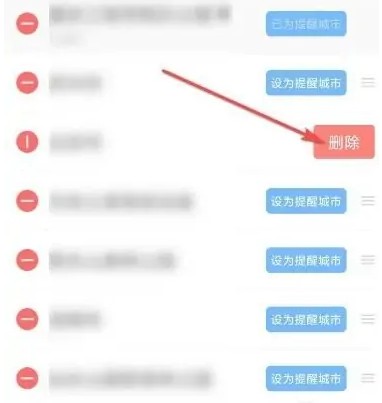 选择想要删除的城市,点击前面的红色减号。