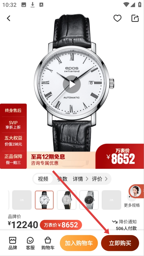 5、分期政策特惠:用户能够享有招行、工行等众多银行提供的十二期免息分期服务,极大减轻购表时的资金压力,助力用户轻松入手心仪的腕表。