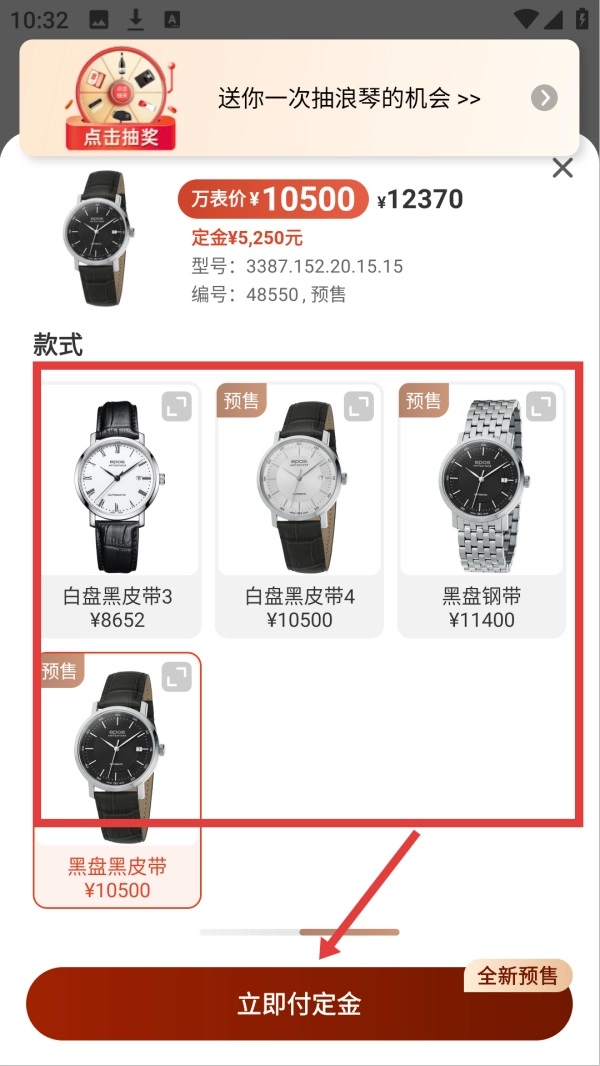 4、进入款式选择页面,挑选好款式后,点击【立即付定金】,完成定金支付操作即可。