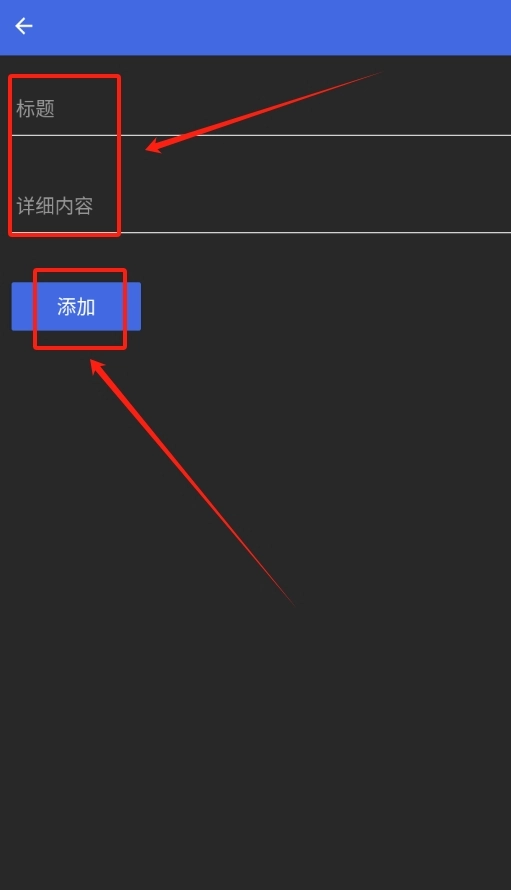2、点击加号,页面随即切换,输入框出现。在输入框内输入待办任务的标题及详细内容,填写完毕后点击添加。