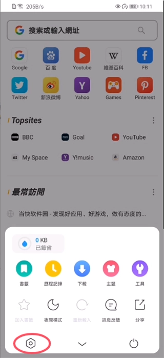 1、在本站安装好uc浏览器后点击应用底部的菜单按钮;