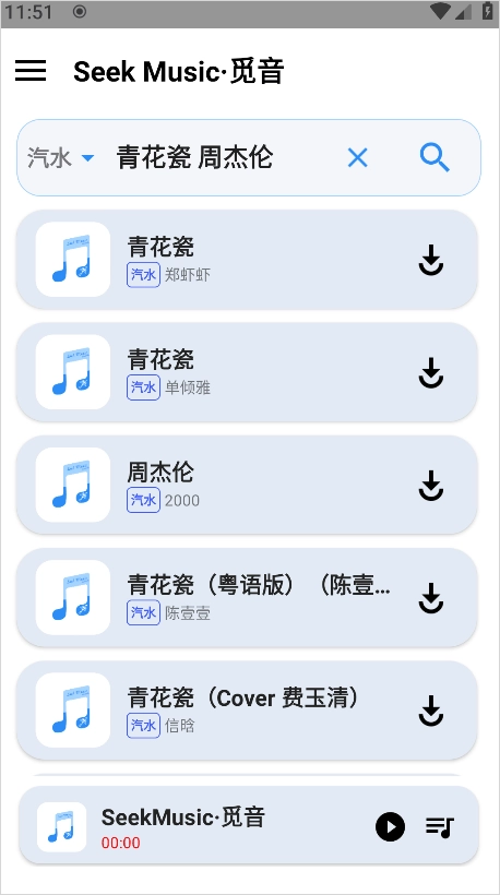 用户能够借助歌曲名或歌手名快速查找想要的音乐,平台提供在线播放功能,让用户可以随时便捷地收听喜爱的曲目。