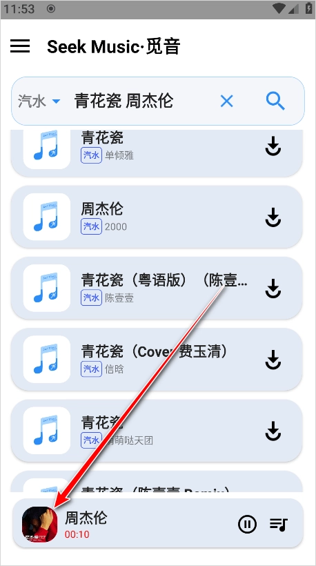 你可以先输入歌曲名称或者歌手的名字,接着点击进入,就能找到自己钟爱的歌曲版本了。