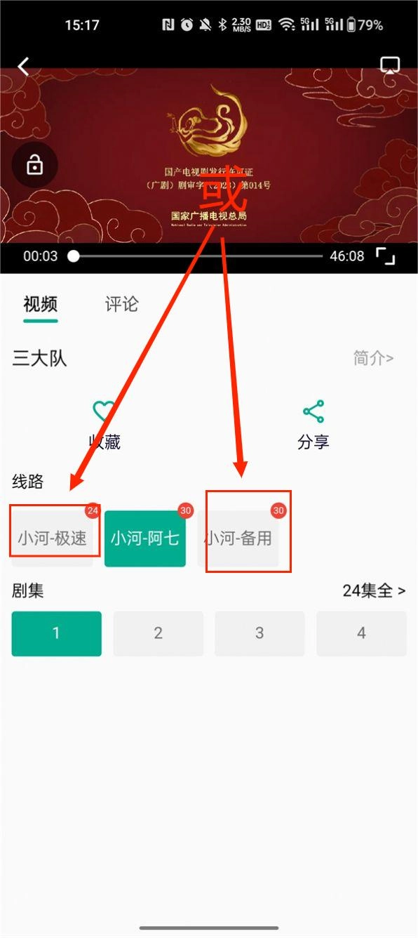 打开小河视频,点击想看的影视,进入播放界面