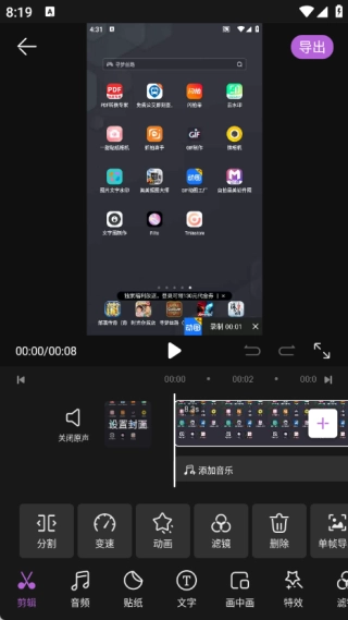 当你进入视频剪辑的操作界面后,可以根据需求挑选各类剪辑方式,同时也能运用多种美化工具来优化视频效果。