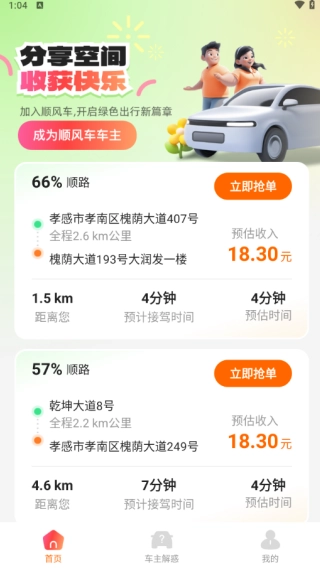 平台拥有海量订单,车主能够依据自身的行程规划、时间喜好、顺路情况等条件,灵活挑选理想订单,自主把握接单的节奏。