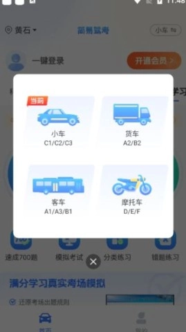 学习模块选择: 点击右上角的小车切换驾照类型。
